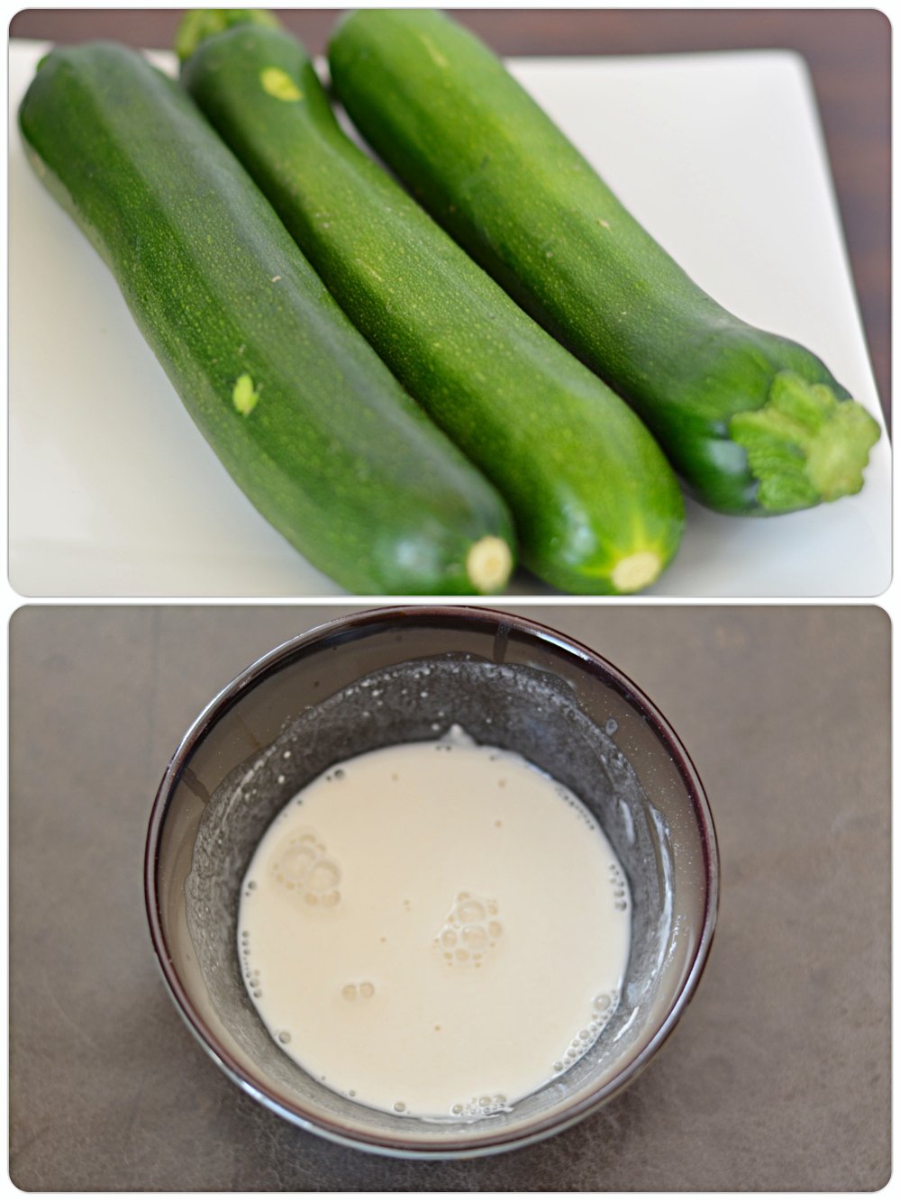 - Make a thin batter with all purpose flour and water. If using egg white then skip this part. Clean and wash zucchini.