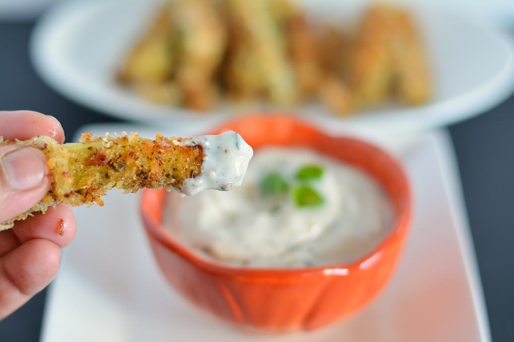 - Dip them in dressing of your choice and enjoy!! I am using Ranch dressing here.