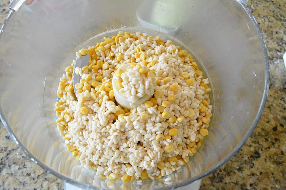 - Wash and drain dal. Make sure it is completely free of water. Add it to a food processor.