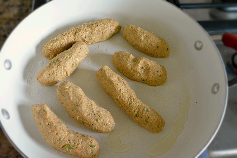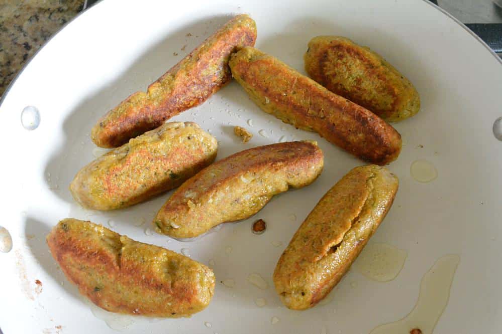 - After 30 minutes, take them out. Heat oil in a kadai, add kebabs and start cooking on a medium flame.