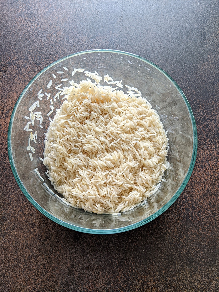- While the chicken is marinating, let's work with the rice. Sort through the rice to remove all the pebbles and gritty things. Rinse and rub rice thoroughly until the water runs clear. Pre-soak the rice for 20 minutes. After that, drain and set it aside.Tip — This step is essential. Soaking the rice for enough time allows the rice to become stronger, and as such, the rice puffs up really well. A minimum of 20 minutes of soaking time is recommended to achieve the best results.