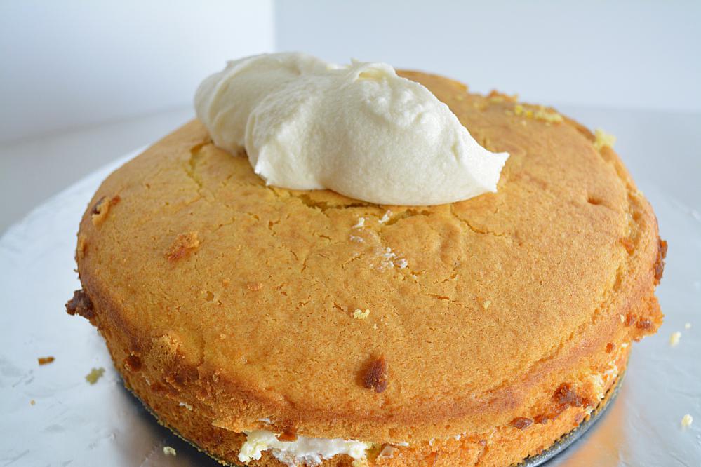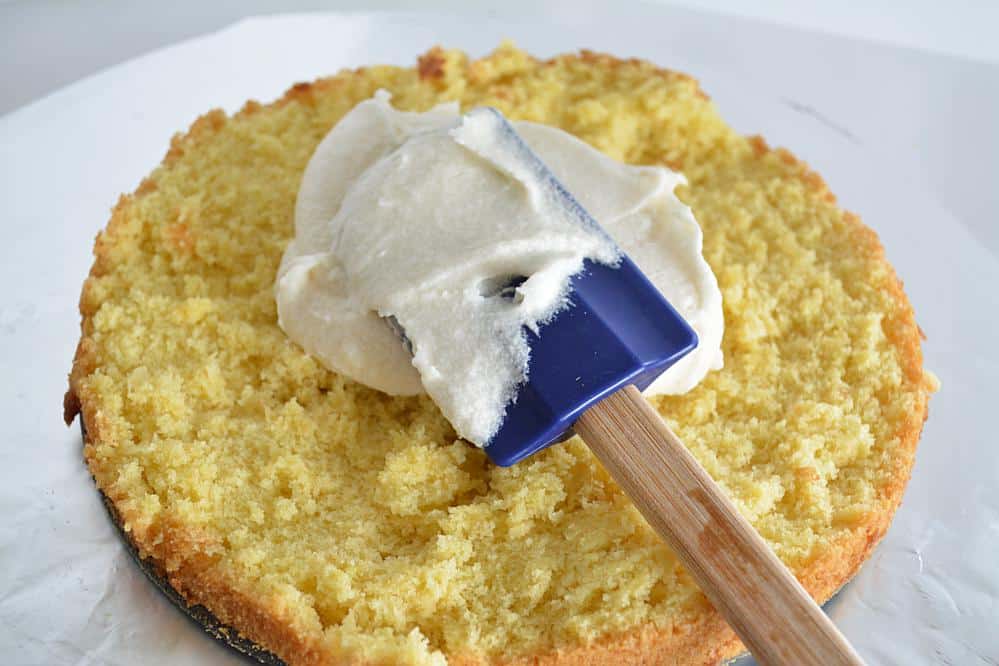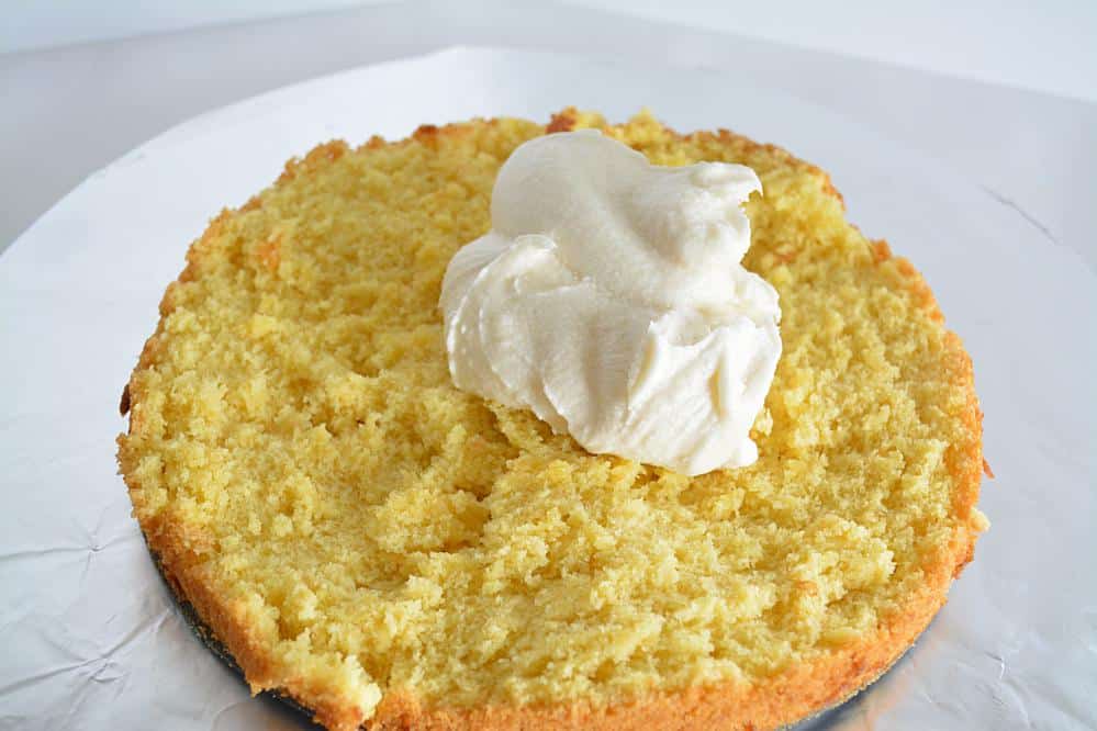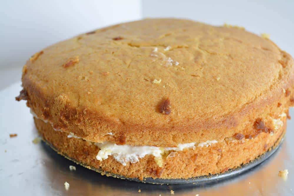 - Once the cake has completely cooled down, use a serrated knife to cut the cake horizontally. Just go slowly around the cake.