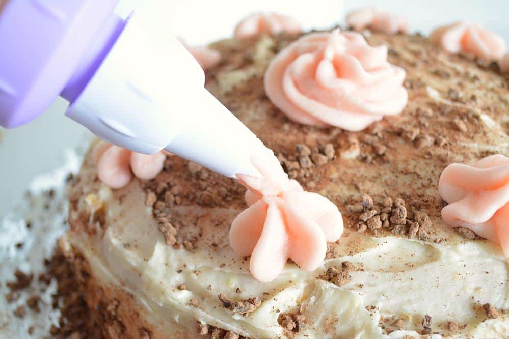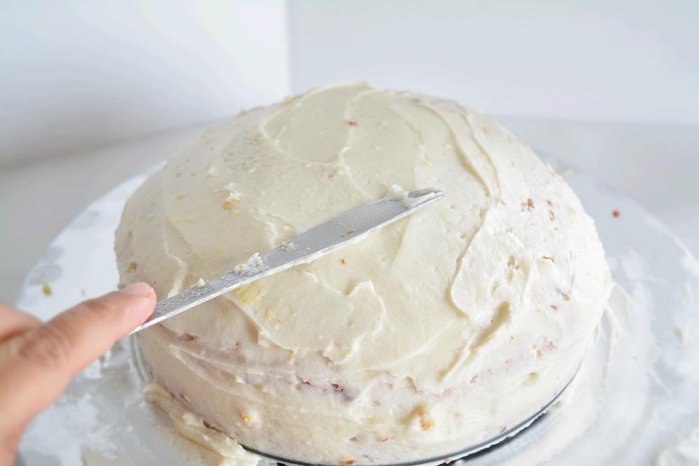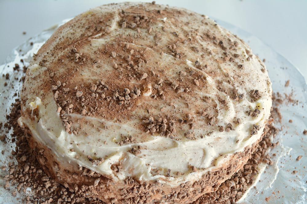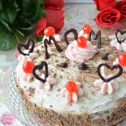Preparing butter cream is pretty easy. Beat everything up till you get a fluffy and smooth frosting. Spread it around the cake and coat it again to get a smooth finish. I prefer my cakes with less frosting so I choose to give it an extra crunch by dusting my cake with a thin layer of cookie crumbs – but again this is optional. Decorate it with your favorite fruits and topping and serve it with love to the most special person in your life – MOM 🙂