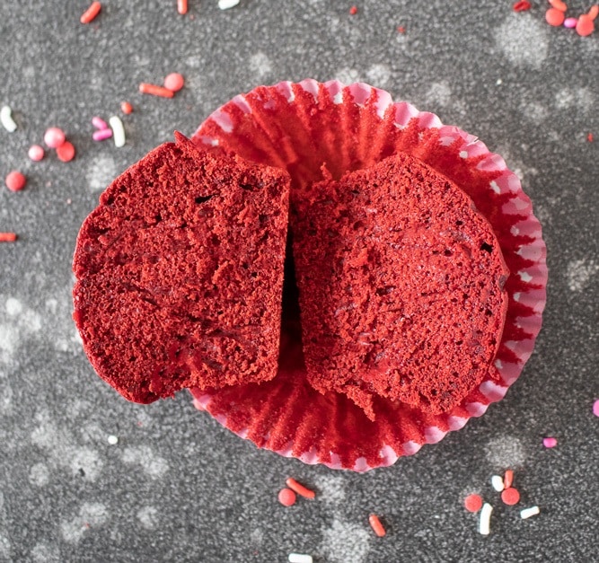 Red food coloring — Concentrated gel food coloring gives these cupcakes their signature deep red color, making them look irresistible. You can use any good food color, but Wilton gel Red food color works the best. As a substitute to food color natural Beets powder works great too!