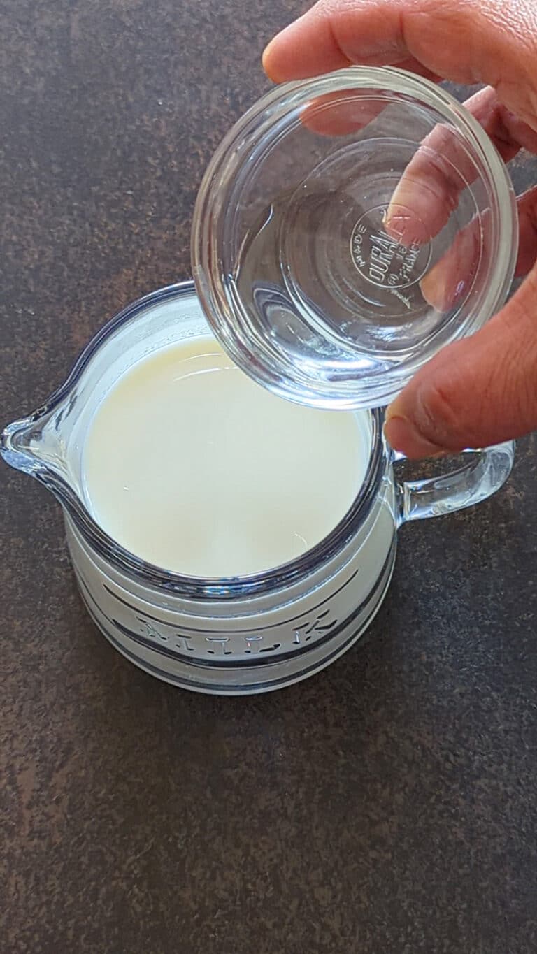 - Combine milk and vinegar in a cup.