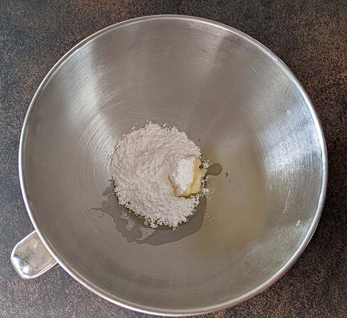 - Add the sugar and the butter to the bowl of your stand mixer.