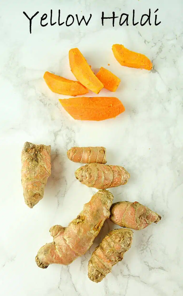 - In winters, yellow turmeric can be found in your local Indian grocery stores. If you can’t find them, feel free to leave that out and continue with the rest of the recipe.