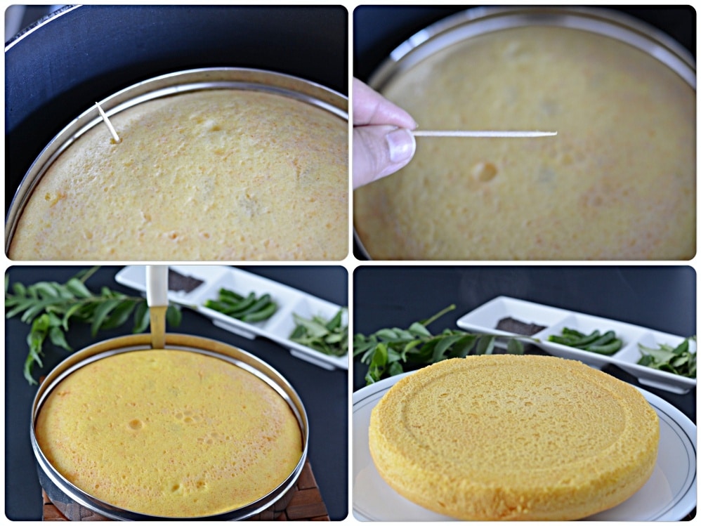 9. After the cooking time is over, insert a toothpick to check if khaman is cooked correctly. It should come out clean.
