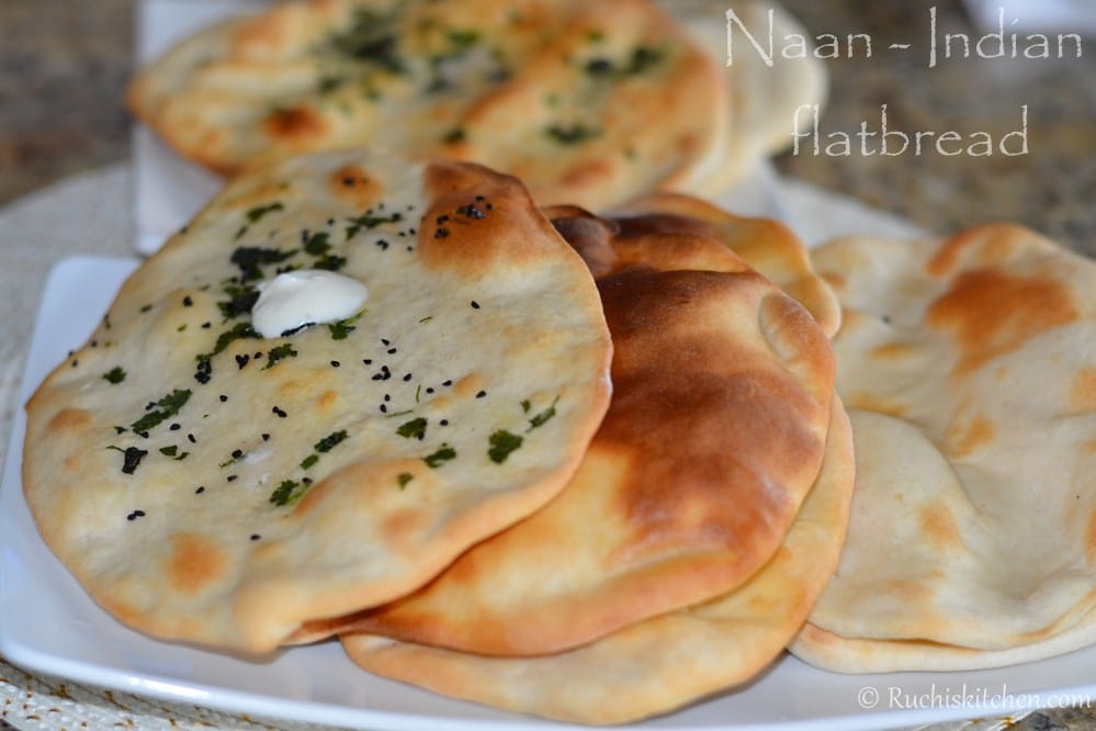 - FOR GARLIC NAAN- Mix 1 teaspoon of grated garlic in 3 teaspoon of melted butter and add salt to it. Mix it well. To make garlic naan – brush this mixture on top of the naan and place it on the oven rack and broil it.