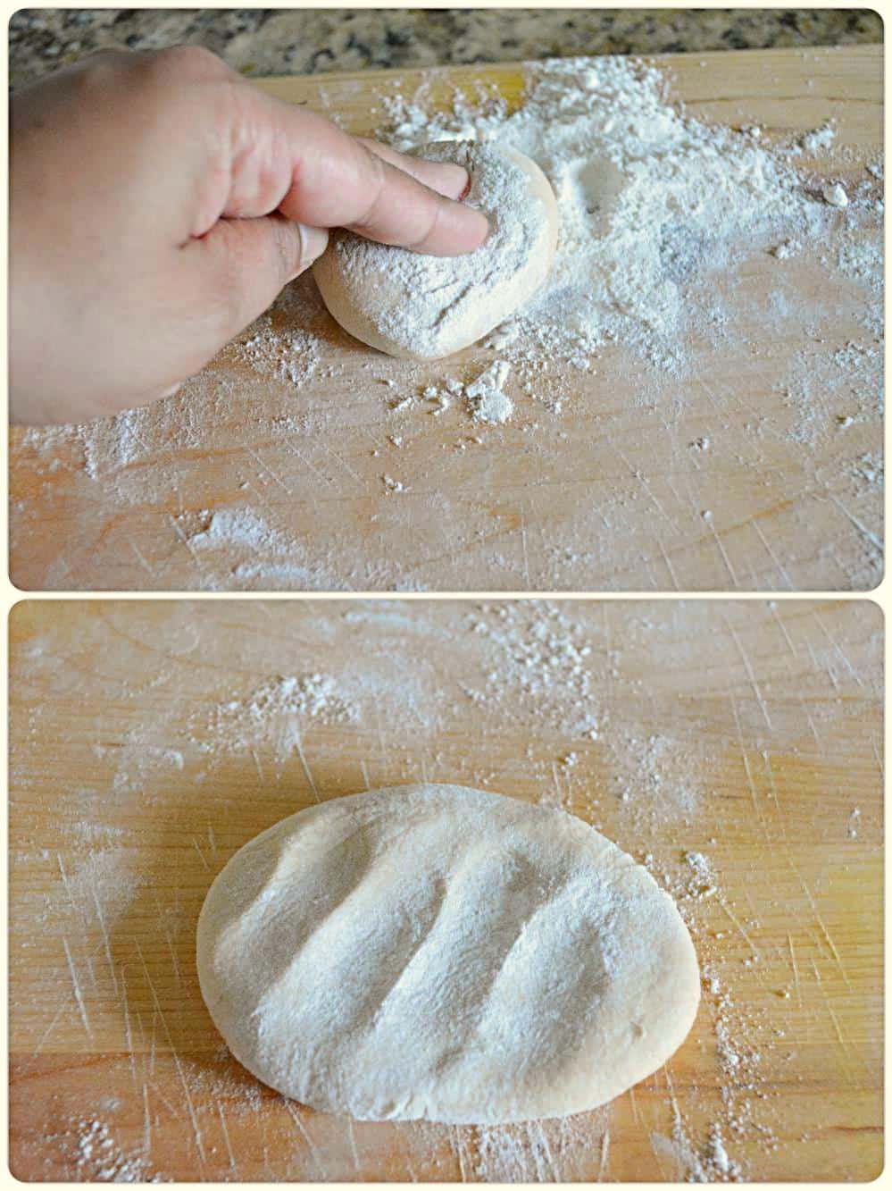 - Dust it with dry dough and..