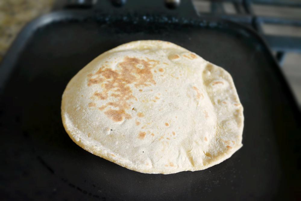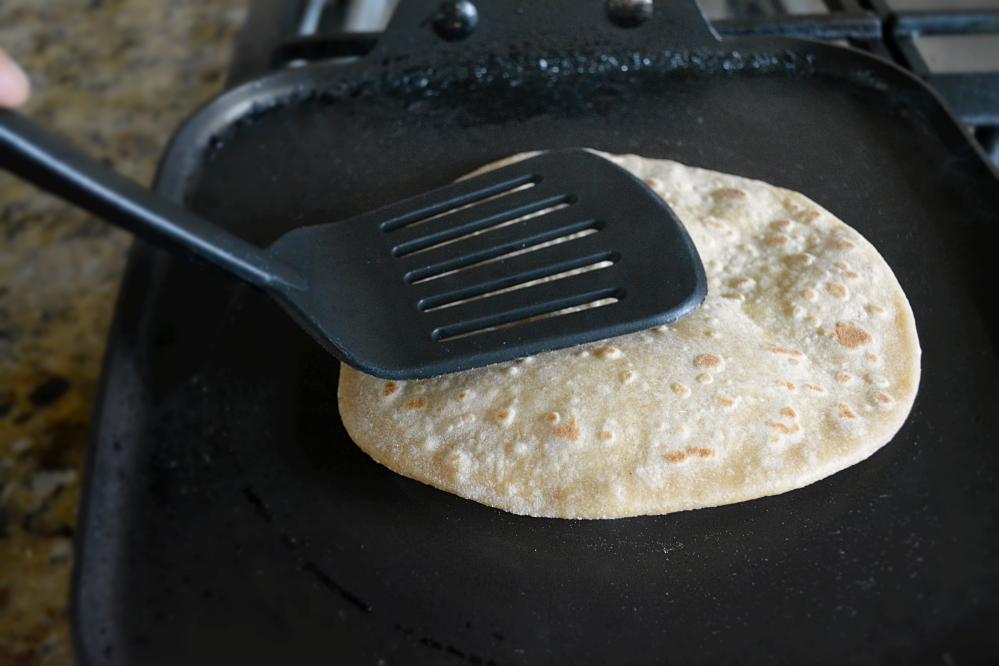 - Using a rolling pin, roll it like a big circle. Heat a griddle/tawa.