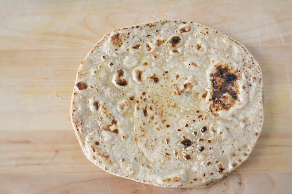 - Take it off the flame and apply ghee. Place it in a container and cover. Repeat the process with rest of the dough.