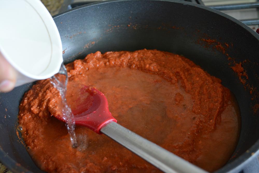 - When the oil/butter separates from the masala, pour in 1/4 cup of water. Add water accordingly, if you prefer thick gravy pour in less water.