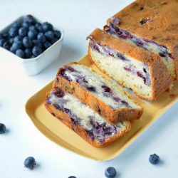 You can bake this blueberry cake in a 9.5×5 inch loaf pan. Baking time will vary. Therefore, start keeping a watch on the cake around 38 minutes into baking.