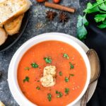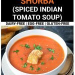Gluten-free and vegan recipe — This Instant Pot Tomato Shorba soup is naturally gluten-free and vegan. But if you are not vegan, a fresh swirl of cream on top of a hot soup will amp up the soup’s flavor.