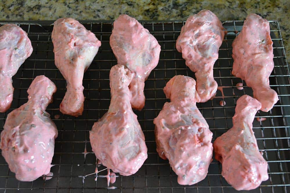 - Rub the marinade all over the chicken and allow it to sit in the refrigerator for at least 1 hour.
