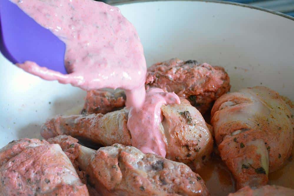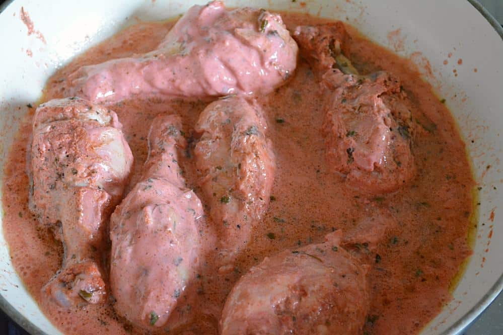 - AFTER 5 MINUTES (10 minutes into cooking)- chicken will turn all liquidy as the curd coagulates...