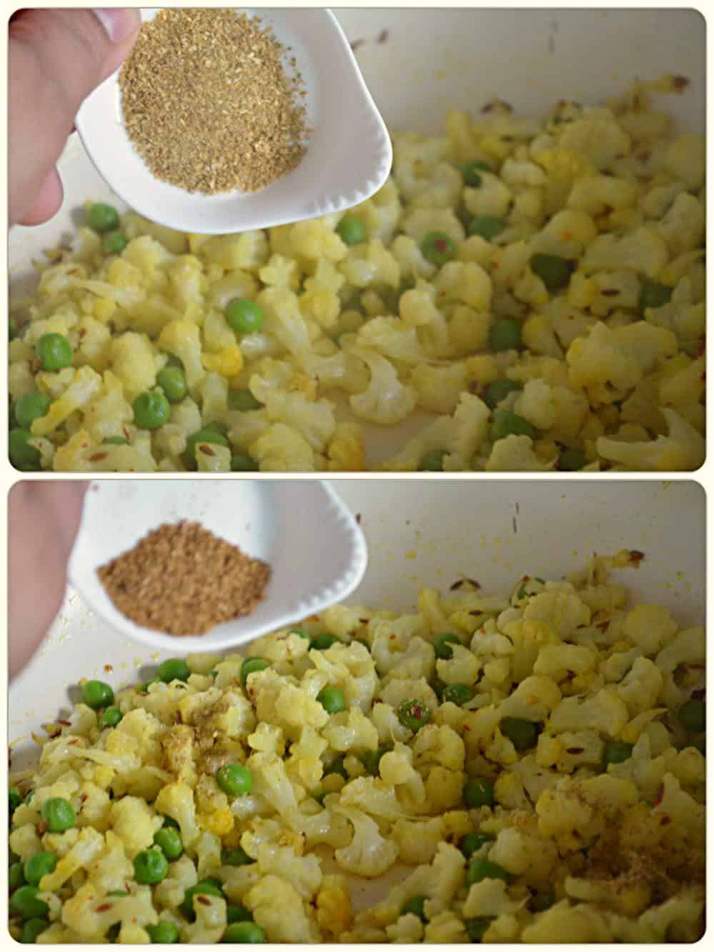 - Once soft and tender mix in rest of the spices and toss them. While tossing they will break up and resemble as keema or minced gobhi. Still mix it up gently.