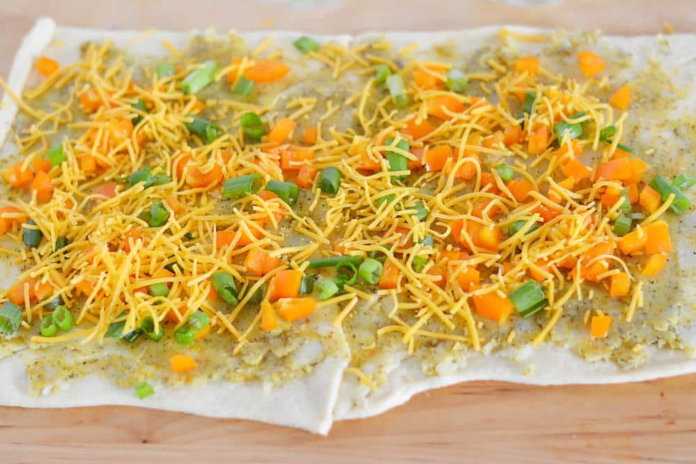 - Or you can spread the mixture all over the dough, sprinkle some cheese, green onions and...