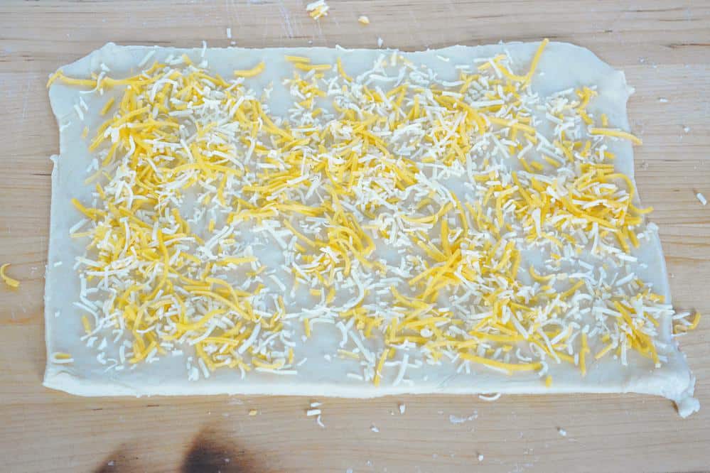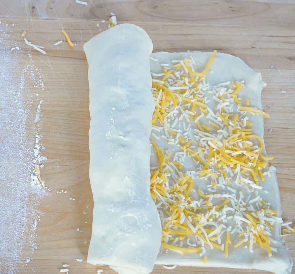 - Roll the dough into a rectangle. If you like you can trim the corners and give it a rectangle look.
