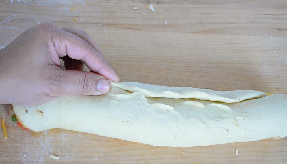 - Apply some water and seal the ends. Repeat the process with the other dough ball.