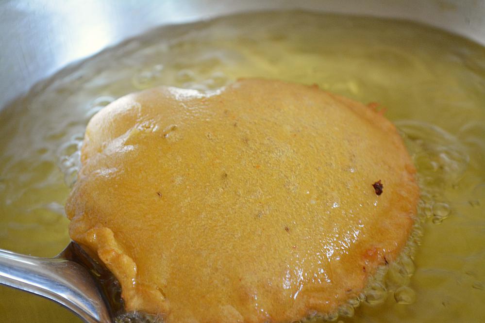 - Once the oil is hot, deep fry the puris till they are golden brown in color.