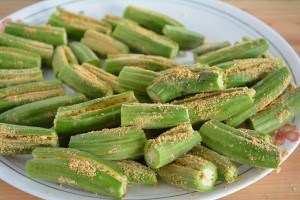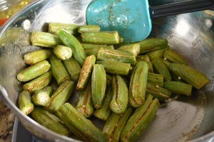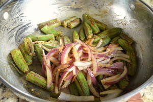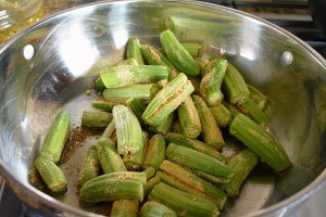 Enjoy hot okra with warm rotis. A great accompaniment to any Indian meal.