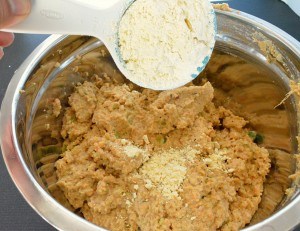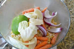 Add veggies. If using a mixer to grind dal, then please do not add veggies to the mixer. It will make the mixture runny and difficult to handle. Instead finely chop the veggies and add it to the grounded dal later.