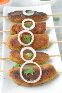 And start shaping the kebabs. If you are finding it difficult to shape the kebabs then apply some oil in your palms and try shaping them. Keep the shaped kebabs in the refrigerator for 30 minutes. One way is to spread these kebabs on a wet skewers and pan cook them and another method is to shape them like kebabs and pan cook them.
