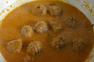 Drop in cooked keema koftas, mix and give it a final boil.