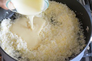Pour in condensed milk....