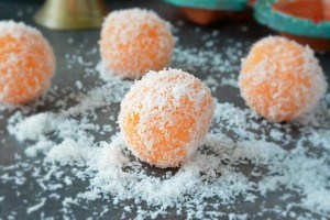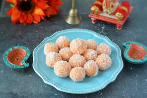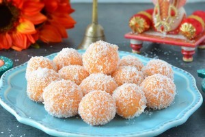 Yummy and delicious coconut ladoos are ready.
