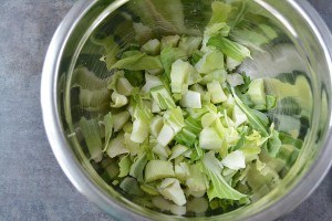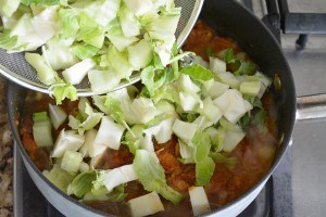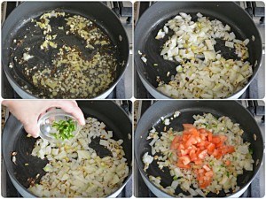 Saute for few seconds and mix in chopped onions. Saute until onions are translucent.