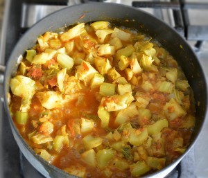Let it cook for 20 -25 minutes or until the cauliflower stems are soft and tender. You can choose to pressure cook this for 4-5 whistles.