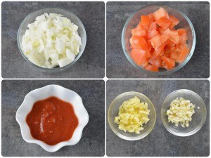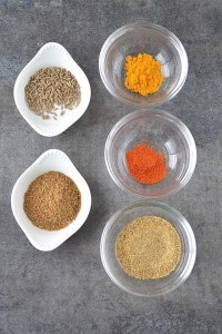 Heat oil in a pan. Add cumin seeds and as they start to crackle mix in ginger and garlic.
