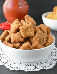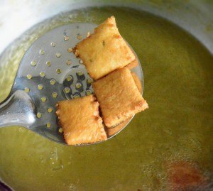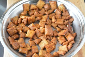 Since the gurparas are sticky, I like to toss all the para(s) in dry gur powder.