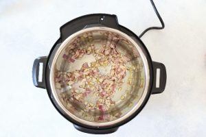 Pour in the water/vegetable stock and deglaze the pot. Cancel the Saute mode.