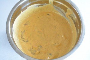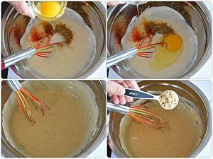 Add egg and whisk it well. Stir in besan and whisk and make sure no lumps are formed.