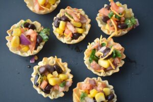 In this recipe I have used phyllo/Fillo mini shells to make these Mexican filled bowls.