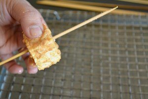 Put skewers on a wire rack and place a tray underneath the skewers.