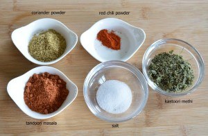 Add in kastoori methi, tandoori masala, nutmeg powder and salt. Whisk and mix till all the spices are well blended.