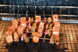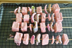 Soak wooden skewers in water for 30- 40 minutes. Preheat oven at 350 degree F.