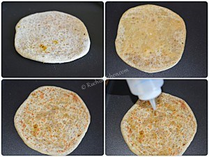 Place the paratha on the hot griddle. When cooked form one side turn over and cook the other one. Apply oil and begin toasting.