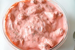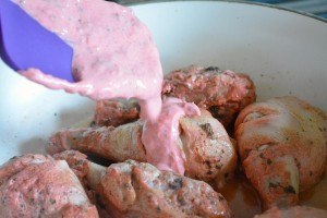 AFTER 5 MINUTES (10 minutes into cooking)- chicken will turn all liquidy as the curd coagulates...