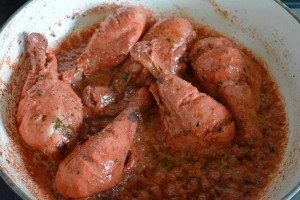 AFTER 5 MINUTES - Chicken will look like this - masala all washed out and watery. No worries.