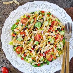 This salad tastes BEST when fresh and doesn’t store pretty well. But, if you still have leftovers, then store the leftover salad without the addition of avocados and tortilla strips. It will last for up to a day in the refrigerator.