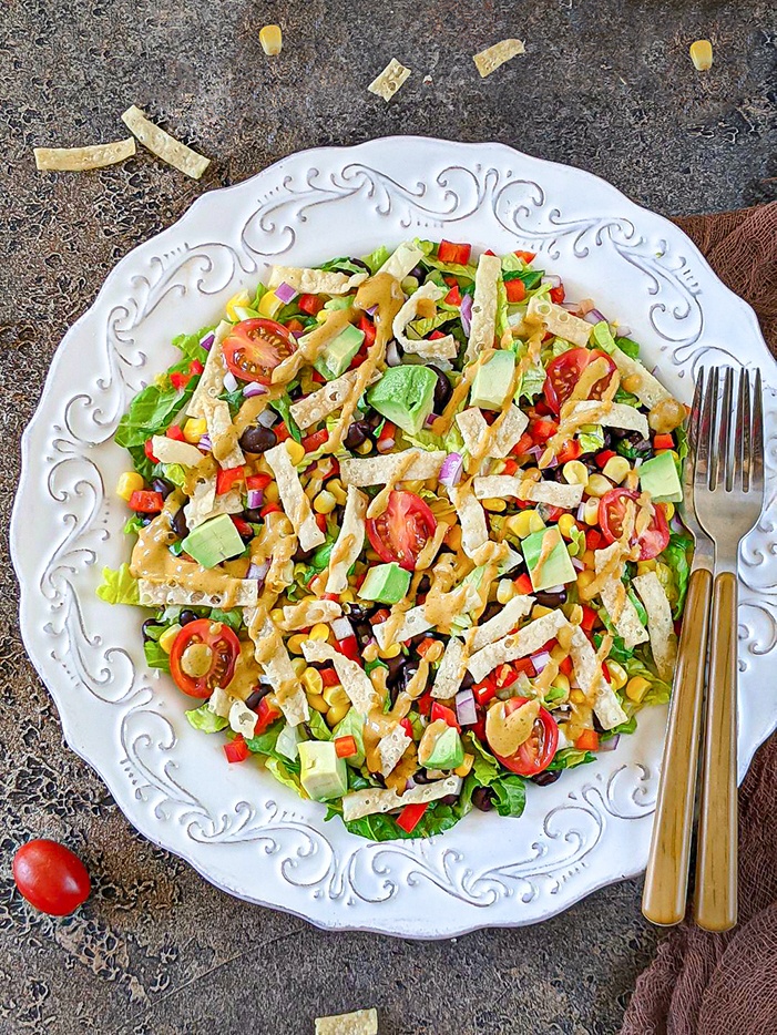 Finish the salad with a delicious and creamy homemade chipotle dressing, and it will satisfy all your cravings for southwestern flavors!